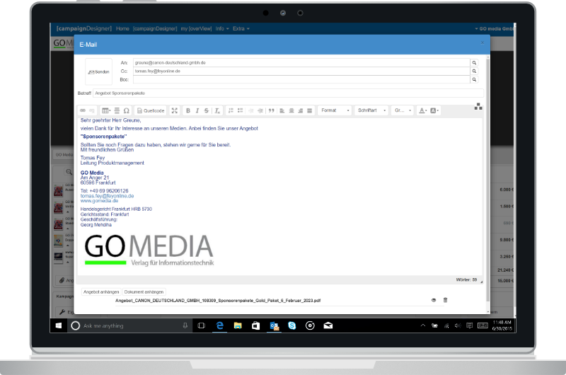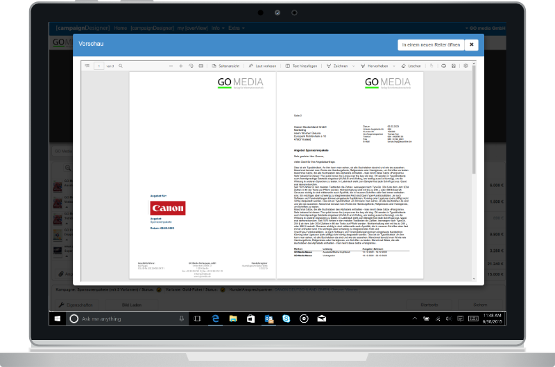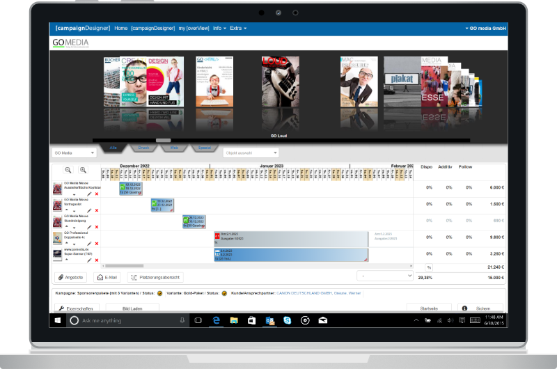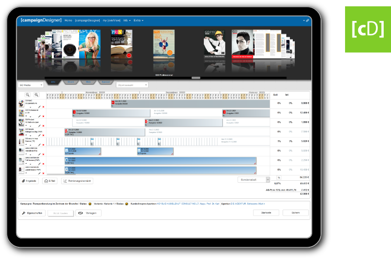 Der campaignDesigner bietet eine ganzheitliche Lösung für den hochwertigen Verkaufsprozess – von der ersten Idee über die überzeugende Präsentation des Werbeauftritts bis zur finalen Buchung.